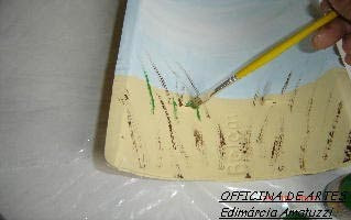 Pegue a tinta sempre só com o cantinho do pincel, vá aos poucos, para que a sua pintura não fique muito carregada;